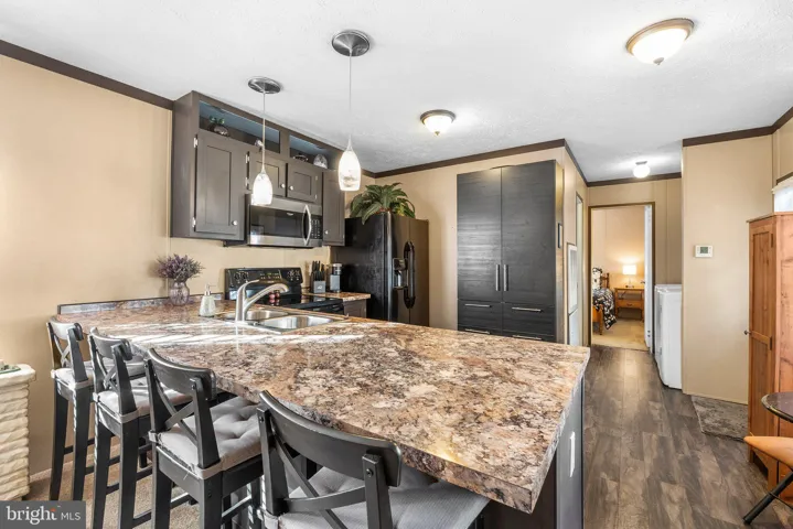 Step outside to a private deck just off the kitchen, complete with a stone fireplace and a charming covered sitting area overlooking the scenic backyard. A picturesque wood-covered bridge leads to a secondary manufactured home offering an additional 800 sq ft, 2 bedrooms, 1 bathroom, and its own private driveway—perfect for in-laws, guests, or rental income.