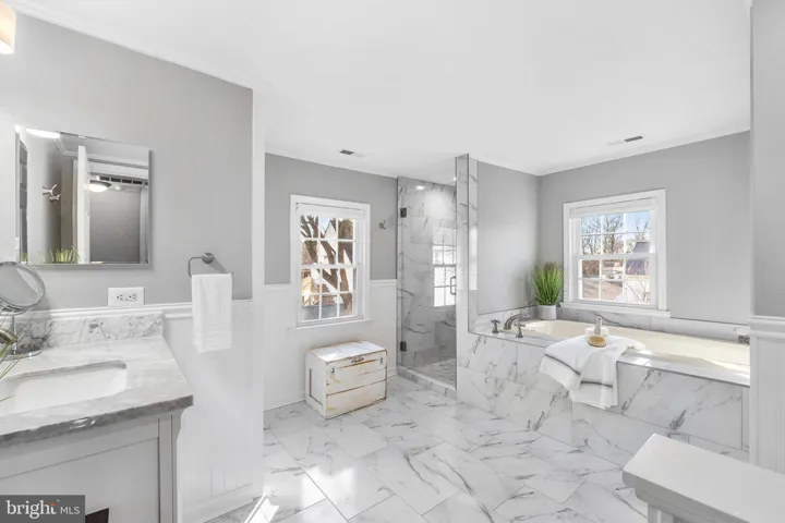 The main level includes a cozy family room, a formal dining area, a versatile bedroom or office, and a brand-new full bathroom. Upstairs, you’ll find two additional bedrooms and a renovated bathroom with ceramic tile, soaking tub, granite-topped vanity, and a spacious shower. A finished staircase leads to the attic, offering even more flexible living space. The lower level retains its original stone foundation with a poured concrete slab, providing excellent storage and utility space.