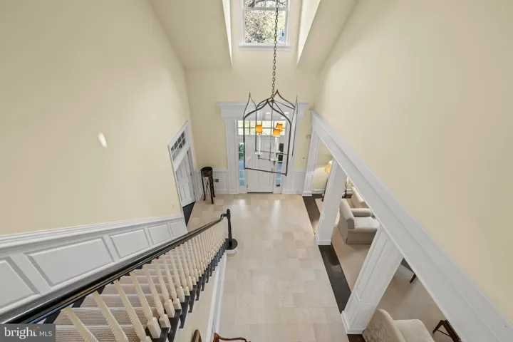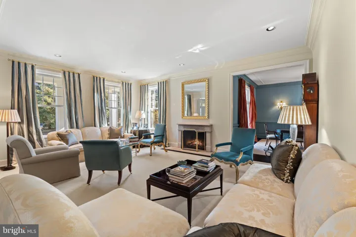 Upon entering the grand two-story foyer adorned with honed marble flooring, you are welcomed into embassy-sized rooms that flow effortlessly from one to another. To the right of the foyer, a spacious library with custom built-ins provides a refined space. To the left, the elegant living room features a custom limestone mantel framing the gas fireplace, adding a touch of classic sophistication. The residence also offers a gracious dining room, perfect for hosting formal dinners and celebrations, with convenient patio access that brings the outdoors in. The impressive two-story family room, anchored by a gas fireplace with a marble surround, creates an inviting space for gatherings of all sizes.