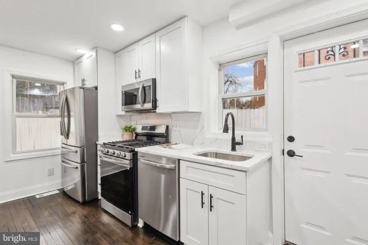 Simply stunning! Welcome to this newly renovated home. The covered entrance opens to an ample living space with hardwood floors, and open concept living. The kitchen is brand new with quartz counter tops, white cabinetry, and stainless steel appliances. Upstairs there are 2 bedrooms and 1 full bath. The lower level has a 3rd legal bedroom, full bath, and utilities including washer/dryer hookup. Outside is a patio, huge yard, and private driveway with a shed for storage. Situated on a quiet street next to the playground and steps to the metro and beltway, this home is live, work, and play friendly! Fresh paint, new flooring, new roof. Beautiful!