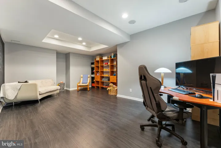 The lower level finished with dark gray luxury vinyl plank includes the recreation room which has two large open spaces for seating, gaming or play areas, an expansive wet bar, as well as the 5th bedroom and 4th full bath. The other rooms include one currently used as a gym (which has brand new flooring and finally the large storage/utility room. The lower level has full size windows and a door which accesses the lower level rear patio.