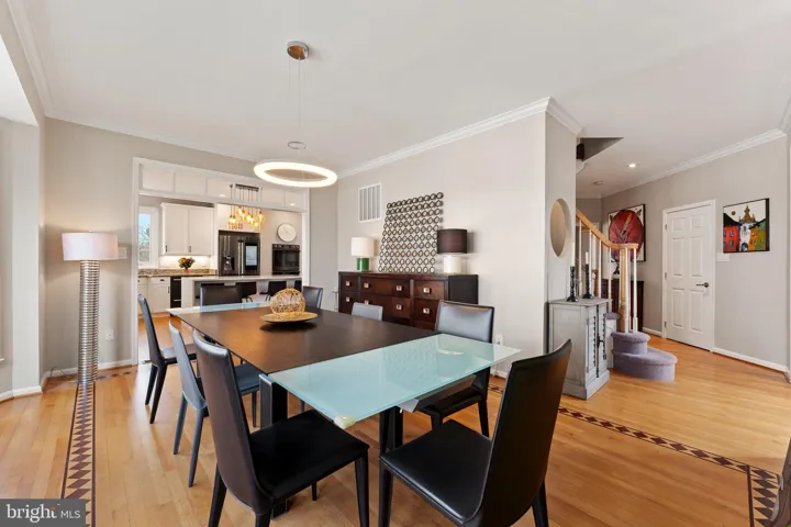 The details that grace this home are 5-star from the medallion hardwood inlay in the foyer and dining room accent inlays, expansive crown molding, coffered and tray ceilings, transom windows, upgraded window treatments to the stylish modern chandeliers, pendants and recessed lighting.