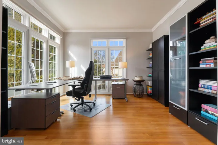 You’ll walk into the foyer with a large and light-filled home office to your left via glass French doors and a formal two-story living room with gas fireplace to your right. Heading towards the back of the home you can head left into the formal dining room large enough to seat a party of 10+ quite easily, and back into the rear of the home where the heart of the home is found – the gorgeous and remodeled kitchen with Cafe and Samsung appliances, an oversize island with waterfall countertops and an abundance of cabinetry along with a pantry to store dry goods and more. Next to the kitchen is the spacious breakfast area and step down to the large family room with gas fireplace, transom windows and coffered ceiling. Access to the wonderfully large deck is found through the sliding door off the breakfast area and the deck has a stairway that leads to the lower level patio and yard. This level also has a powder room, a large laundry room with sink and cabinets, and an oversized two-car garage.