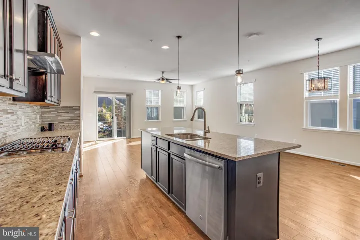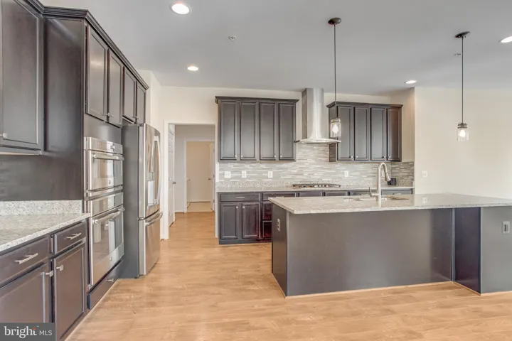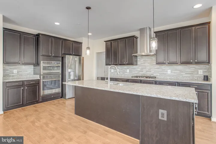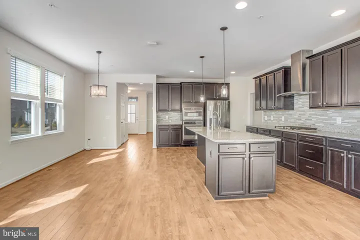 **This home features a main-level primary suite with two walk-in closets and a luxury en-suite bath featuring a double vanity, glass-enclosed walk-in shower, and elegant tile finishes. The gourmet kitchen is a chef’s dream, boasting custom dark wood cabinetry, granite countertops, a large island, stainless steel appliances, a built-in microwave, a gas cooktop, an exterior-vented range hood, and a built-in wall oven. The open floor plan flows seamlessly between the kitchen, dining, and living areas, enhanced by luxury engineered hardwood flooring and designer lighting, with large windows filling the space with natural light.