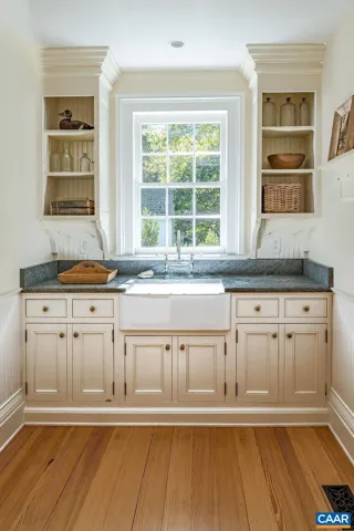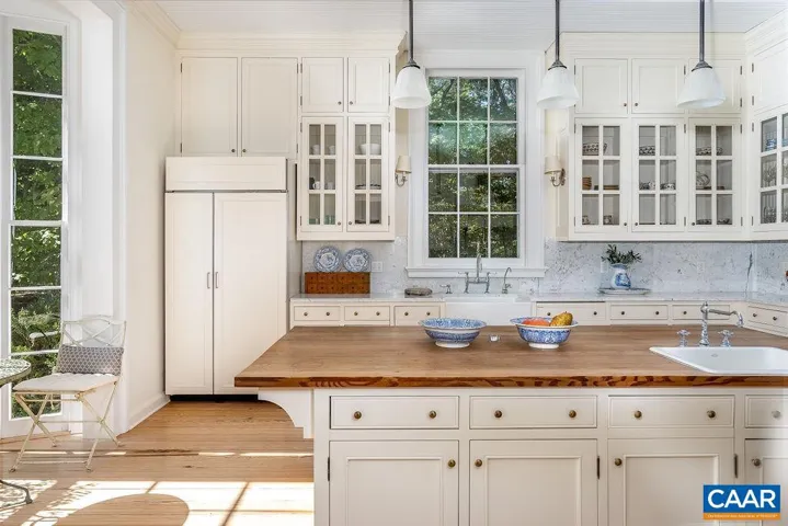 c.1856, Oakleigh is a beautifully renovated, turn-key country estate in the heart of the Green Springs Historic District. The property includes 149 manicured acres with 2 ponds. The home enjoys total tranquility, with no road exposure whatsoever. It has been carefully modernized and renovated over the last 30 years by the current owners and includes 3 bedrooms, 2.5 bathrooms and endless charm. Truly, this home is Architectural Digest- worthy! Other structures include a smokehouse, horse or livestock barn, chicken coop and large workshop/equipment shed, which could be finished as a guest house. All dependencies have water and electricity. Wonderful boxwood ringed vegetable garden. Under Conservation easement with 1 division right. There is an excellent building site with mountain views and tucked well away from the main residence. 25 mins to Charlottesville and 40 to Richmond. Fiber optic!,Painted Cabinets,Solid Surface Counter,White Cabinets,Fireplace in Bedroom,Fireplace in Dining Room,Fireplace in Foyer,Fireplace in Living Room