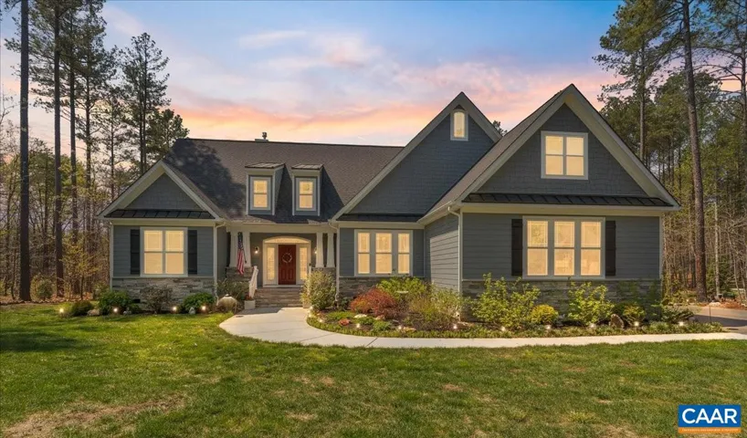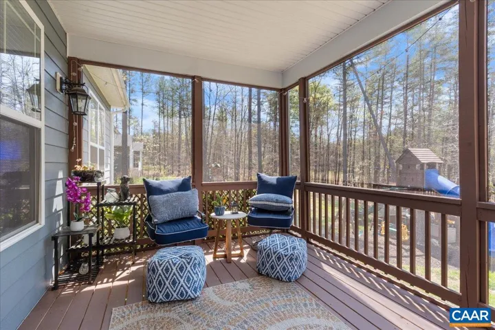 IMPROVED PRICE makes this beautiful, custom “like new” home an even better value! PREFERRED LOT offers back-yard access to all homeowners’ access to 24.91 acres of perpetual OPEN SPACE, multiple trails to creek- see ATTACHED Plat, Declaration. Lovely maturing landscaping investment cannot compare to new construction, as well as this home’s finishes – save thousand$. Welcoming stone front-surrounding accents & large, covered slate porch. Gorgeous contrast with engineered hardwood flooring throughout against the light-filled great room with its soaring vaulted ceiling & cozy gas log fireplace. Great room/kitchen backflows to the screened-in porch & ample deck. Cook’s kitchen boasts quartz counter-tops, gas cook-top, spacious storage & pantry. Primary suite has tray ceiling and 9′ ceilings throughout, and opens to private sunny deck sitting area; bonus dual lighted walk-in closets. Contemporary primary bath with granite dual sinks, double-space shower & glass block window over garden tub. Large 520 sf garage w/ workbench & bump-out section; EV charging station. Home contains 2 AC units/zones & a full-house water filtration system for pure drinking water. New washer & hot water heater installed 2025. See Additional Remarks.,Glass Front Cabinets,Quartz Counter,White Cabinets,Fireplace in Great Room
