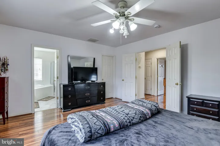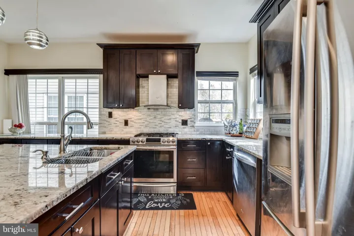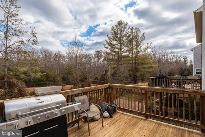 Great Blooms Crossing single family home backs to trees! This home is perfect for entertaining as the Main Level has a great flow ** Open floor plan ** Hardwood floors on Main Level ** Gourmet Kitchen includes center island with overhand for extra seating, granite counter tops, TONS of counter and cabinet space , stainless steel appliances, gas cooking, beautiful tile backsplash, pendant lights over the island ** Kitchen opens to Family Room ** Access deck from the Family Room ** Large Primary Bedroom with walk-in closet ** Luxurious Primary Bath has separate corner soaking tub, walk-in shower, double sin, new mirrors & light fixtures ** Finished Walk-Out Lower Level has several windows and includes a Bonus Room, Full Bathroom with tub/shower combo ** Minutes to VRE!!