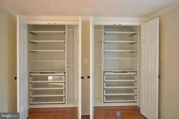 remodeled master closet with double door his and her closets and built in dressers 2022