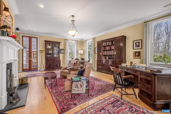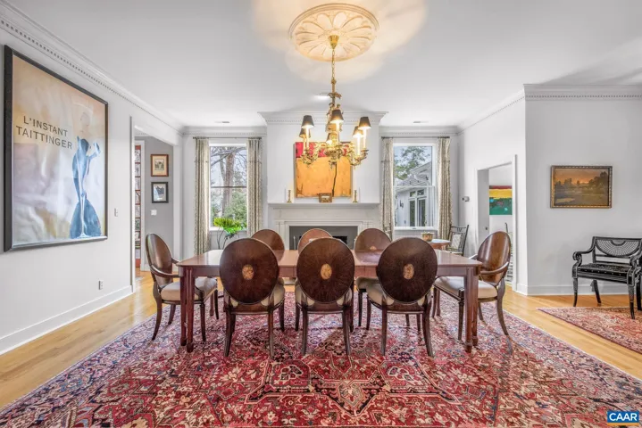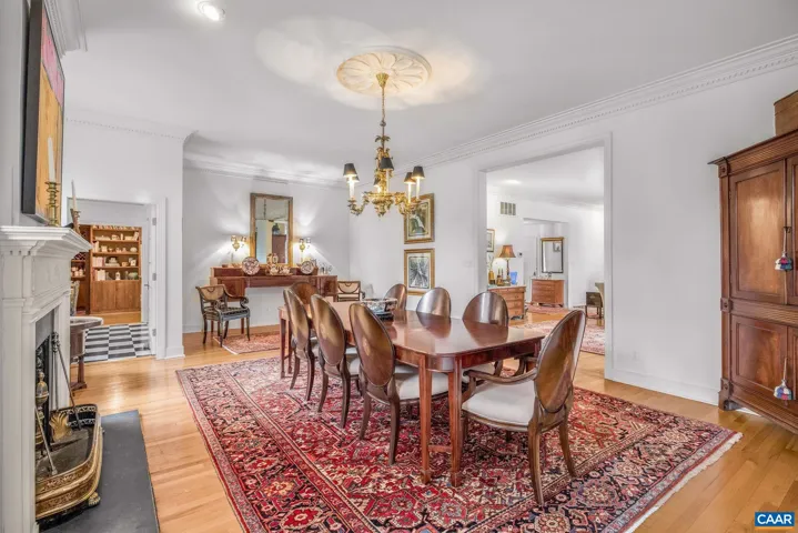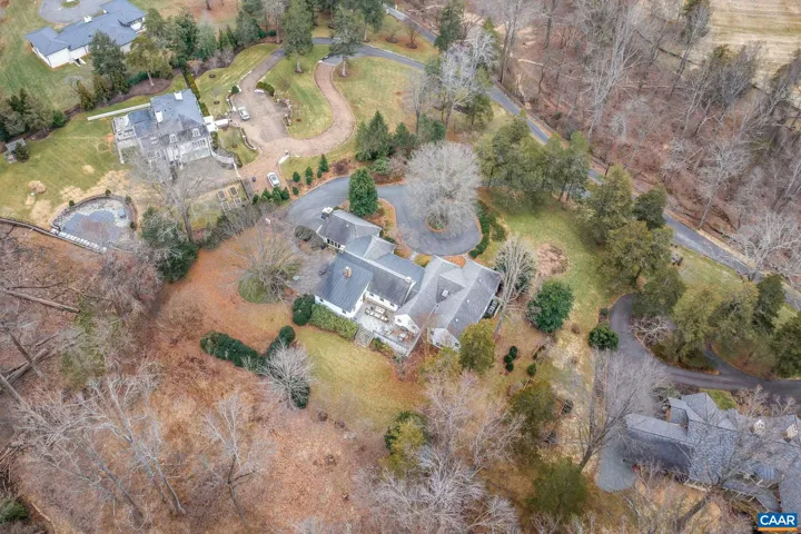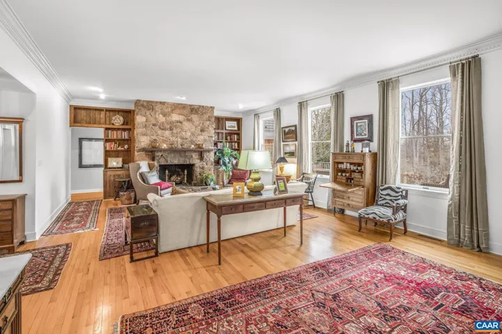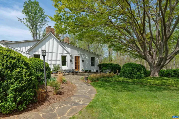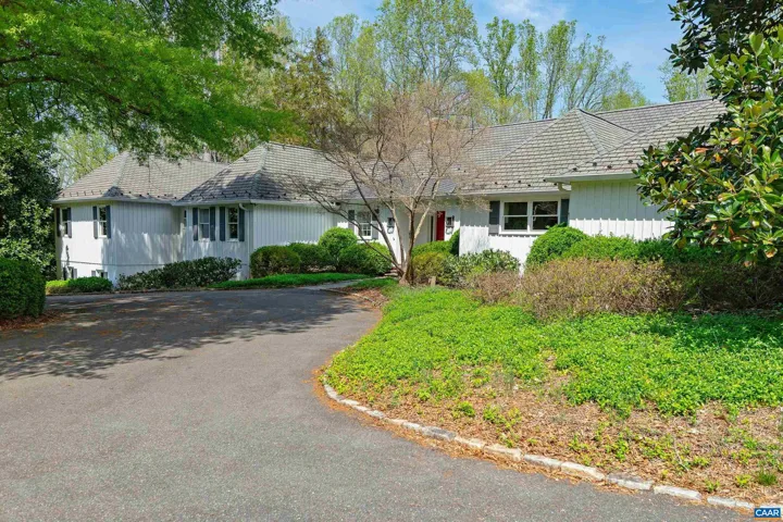 Remarkable & unique 4 bedroom, 5.5 bath, one story residence with a beautifully designed floor plan nestled on a wooded drive and elevated 2.2 acres within the renowned & luxurious confines of Farmington Country Club. Spacious rooms, high ceilings, huge windows, quality finishes, hardwood floors, outstanding flow and charm are just several of the cornerstones that define this lovely home. With over 5,800 finished square feet of living space, there is no shortage of inviting spaces to enjoy and live comfortably. Living room boasts an absolutely stunning stone fireplace built by Sheldon Sprouse – an acclaimed local stone mason. The dining room, family room and library are all well proportioned, have their own handsome fireplaces and spill out to a private stone patio – a perfect spot to entertain. Fully equipped kitchen with stainless steel appliances has an adjoining breakfast room, butlers pantry and additional walk-in pantry. All bedrooms are en-suite, including the primary suite with vaulted ceiling and an attached fully outfitted marble-tiled bath, plus massive closet. The lot has been gorgeously landscaped, offering delightful spaces for relaxation & pursuit, and possesses a most impressive Willow Oak and other specimens.,Stainless Steel Counter,White Cabinets,Wood Cabinets,Fireplace in Dining Room,Fireplace in Family Room,Fireplace in Living Room
