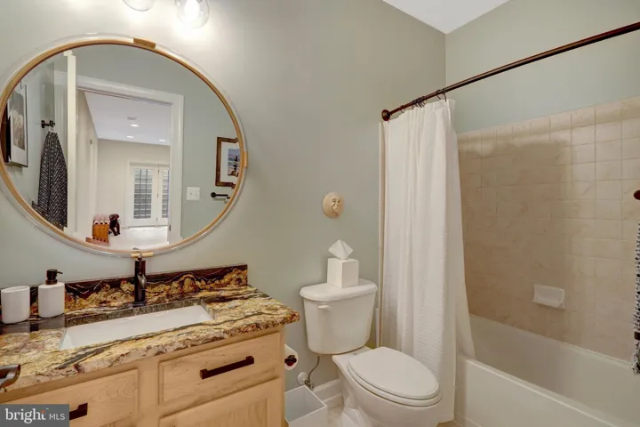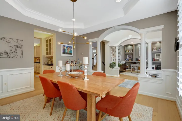 Step inside to find a bright and inviting main level featuring an open floor plan. The family room, dining area, and kitchen flow effortlessly, creating a great space for everyday living and entertaining. The kitchen has been beautifully updated with white cabinetry, a new backsplash, an upgraded island countertop, a new dishwasher (2022), and a brand-new wall oven (2024). Plantation shutters and all-new modern light fixtures elevate the style, while a convenient half bath completes this level.