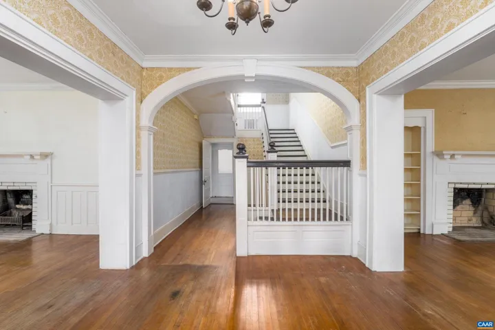 Historic home with privacy, convenience, and lots of charm! Walkable to Downtown Scottsville on 5+ acres, just 5 minutes from the James River. There is 2000+ unfinished sq ft for more living space. Perfect opportunity for a short term rental or bed and breakfast. Just minutes from the James River, this 1914 Greek Revival-style home sits on over five acres, offering endless potential. Classic architectural details include a grand double-columned portico, high ceilings, wood flooring, and multiple fireplaces. The spacious kitchen is a blank slate, ready for customization, while original outbuildings?including a garden house with a working pump?add to the home?s historic charm. With 5 bedrooms and 3.5 bathrooms, this property is perfect for those looking to restore a timeless estate or create a unique bed & breakfast. Located in a serene setting, this property combines the charm of early 20th-century architecture with the tranquility of rural living, all while being conveniently close to local amenities in Albemarle County and Charlottesville. Expand into the large unfinished attic and basement for additional living space.,Formica Counter,Wood Cabinets,Fireplace in Dining Room,Fireplace in Living Room