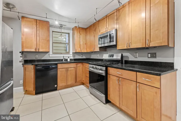 The kitchen is a chef’s dream, boasting stainless steel appliances, ceramic tile flooring, and elegant granite countertops. It’s the perfect setting for both everyday meals and special gatherings.