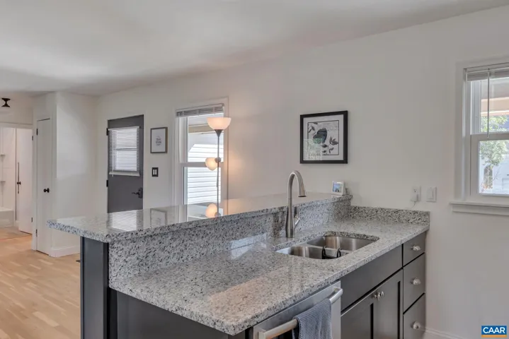 This cozy cottage was thoughtfully renovated in 2023 and is full of charm and updates. Improvements include a new roof, windows, 3-zone mini-split HVAC system, and an encapsulated, conditioned crawl space. The kitchen features updated island cabinetry and countertops, while the bathroom boasts a beautiful tiled shower, new flooring, and a modern vanity. A small outbuilding with electricity sits in the backyard?perfect for a studio, workshop, or additional storage. Home has been well maintained! Don?t miss this sweet gem conveniently located in the Town of Palmyra!,Granite Counter,Wood Cabinets