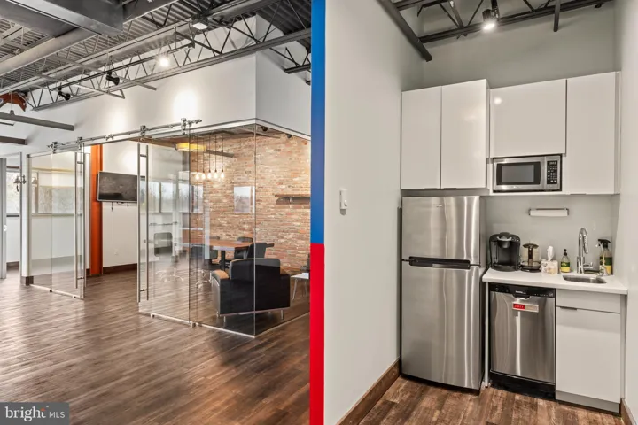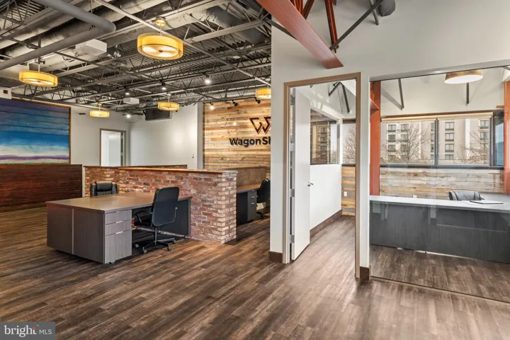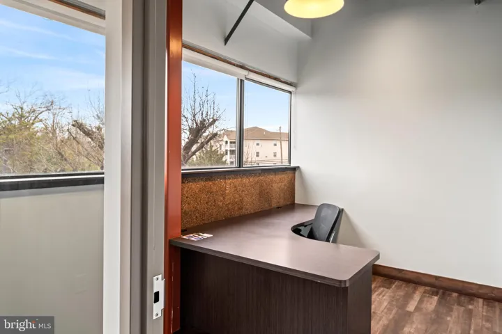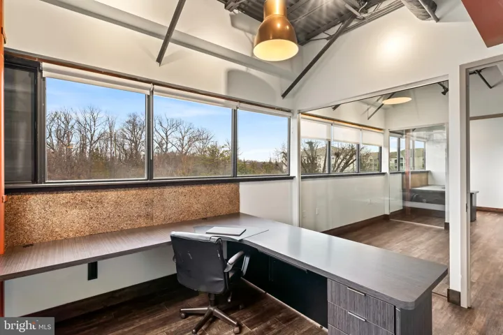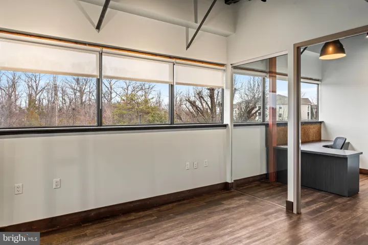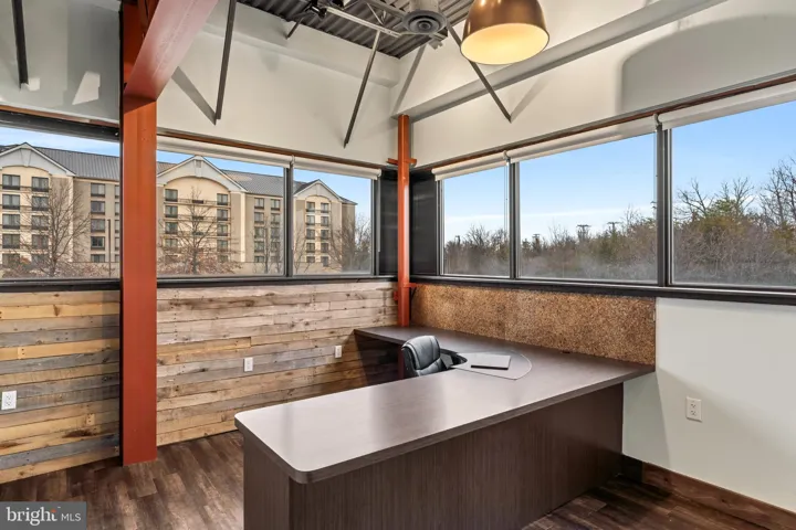 21495 Ridgetop Circle, Suite 205 is a tastefully designed second-floor office in a three-story building, accessible by elevator and stairs. Previously occupied by an architectural firm, it features glass-walled offices, an open floor plan, four private offices, a kitchenette, and a collaborative common area. Ideal for architects, CPAs, financial services, personal services, or medical spa.