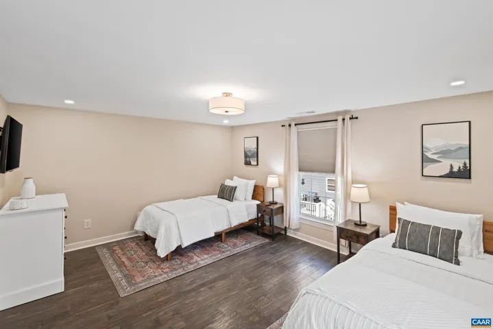 Monticello Midterm is a renovated 31+ day, fully furnished rental in the Belmont neighborhood in downtown Charlottesville. This 4 bedroom, 3 full bath house has a fully stocked kitchen, living room and dining room. The house is located on a corner lot directly across the street from Clark Elementary School with ample street parking, large deck with an outdoor dining set and gas grill. LIVING ROOM: two couches, two accent chairs, coffee table, floor lamp, smart TV. DINING ROOM: dining table and chairs for four and three counter stools. KITCHEN: fully stocked kitchen with gas stove, fridge, dishwasher, wine refrigerator, toaster, coffee pot, blender. LAUNDRY: washer and dryer. BEDROOM 1 (1st�floor): King bed, two nightstands and lights, dresser, closet, smart TV. BATHROOM 1 (1st�floor): Single vanity, walk-in shower, toilet. BEDROOM 2 (2nd�floor): King bed, two nightstands and lights, dresser, closet, smart TV. BATHROOM 2 (2nd�floor): Single vanity, walk-in shower, toilet. BEDROOM 3 (2nd�floor): Two twin beds, two nightstands with lamps, closet, smart TV. BEDROOM 4 (2ND�floor): King bed, two nightstands and lights, dresser, closet, smart TV. BATHROOM 4 (2nd�floor): Single vanity, shower, toilet, walk-in shower. House also has two se