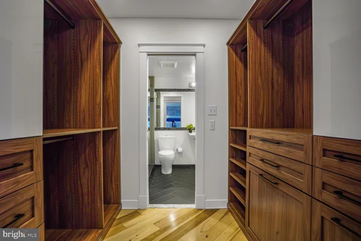 Welcome to this stunning Ballston condo at the Hyde Park featuring two huge bedrooms with California Closets, bathrooms from CASE Design and a reimagined eat-in kitchen with an ideal layout. The unit faces the magnificent plaza courtyards and every room offers leafy green treetop views. The elegant foyer of #511 has terrific tile flooring, a floating console and a walk-in closet with barn doors. The open living-dining-study areas have a seamless flow. Sliding glass doors from both the living and dining areas lead to an expansive balcony for an outdoor sectional couch or large dining table. The kitchen offers maple Thomasville shaker-style cabinetry, granite countertops, under cabinet lighting and an eat-in area with pendant light at the big windows. The gallery hallway to the bedrooms has two more walk-in closets, a linen closet and a beautiful full bath with a floating vanity, tiled walk-in shower (where a tub could be easily added) and LED lit vanity mirror. The designer doors are six-paneled in solid wood. The former 90-degree sharp corner in the hallway has been converted to a wider angled entry area to the 2nd bedroom which features lighting sconces and California Closets built-ins. The palatial primary suite offers a serene sitting area, room for a king bed, sliding glass doors at a Juliet balcony with views of the courtyard, a wonderful walk-in custom closet and deluxe bathroom with glass doors to the shower. Both baths feature Grohe or Axor rain showers, handheld sprayers and/or wall jets. Enjoy fantastic amenities including an outdoor swimming pool, beautiful common grounds, courtyards with grilling and dining areas, community gardens, 24/7 concierge and garage rental parking. The condo fee includes all utilities, 40+ cable TV channels, and free laundry in two rooms (two commercial W/D sets in each) on every floor (#511 is right around the corner from them on the 5th floor)! The dynamic Ballston location is near endless shopping & dining options, several major crossroads of Arlington, Metro stations and more! Sun, Aug 24 2:00 PM – 4:00 PM