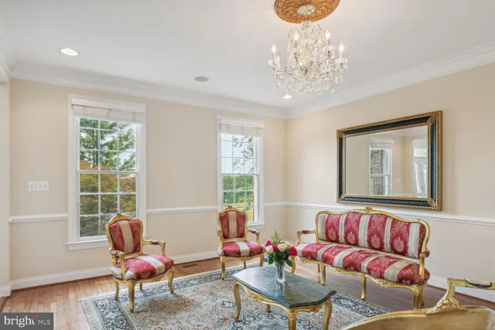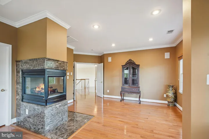 A well-appointed home office offers tranquil views of mature evergreens, while an adjoining sunroom floods the space with natural light and scenic beauty. Upstairs, the luxurious primary suite serves as a private retreat, complete with a tray ceiling, cozy sitting area, fireplace, and two generously sized walk-in closets. The spa-inspired bathroom includes a soaking tub, separate shower, dual vanities, and a convenient laundry chute.