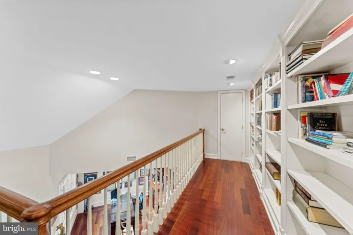 Library/Sitting Room with fireplace, built-ins, wet bar, and a second-story balcony with book shelving
