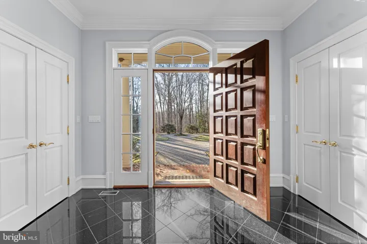 Grand Mahogany entry door to a spacious foyer with exceptional sightlines