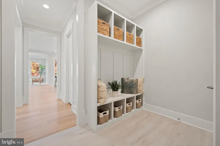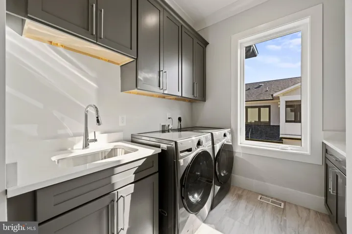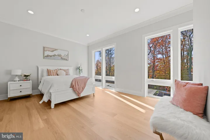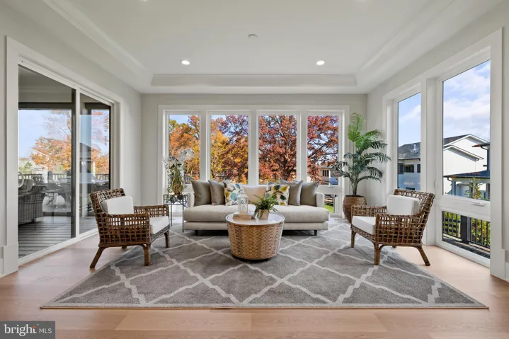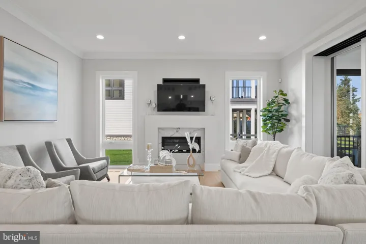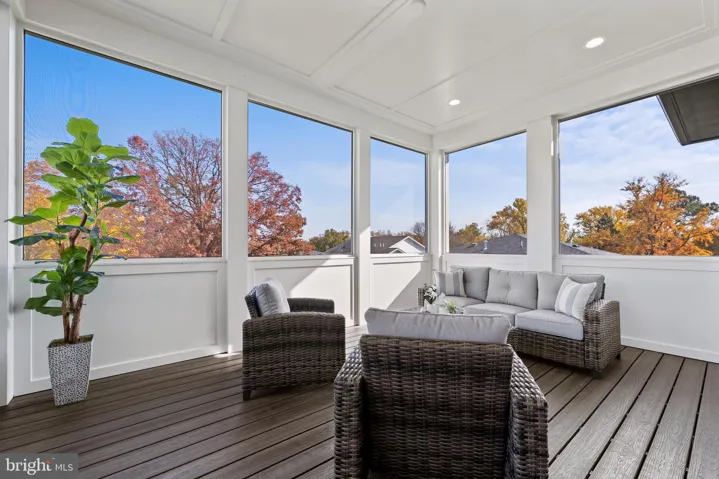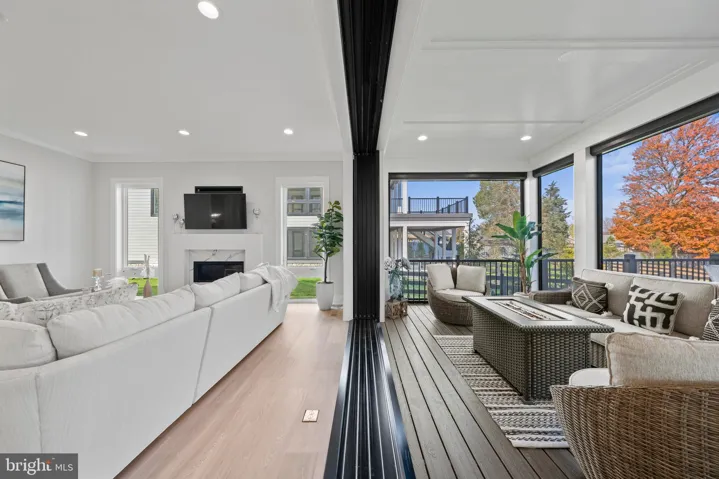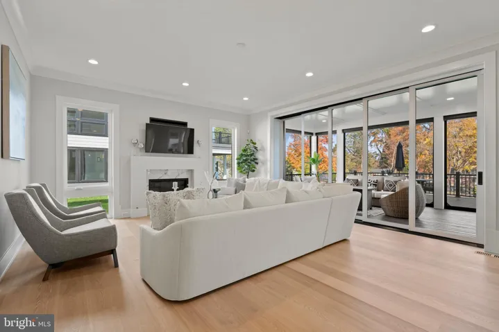 The gourmet kitchen is a chef’s dream, complete with premium appliances, quartz countertops, custom cabinetry, and a walk-in pantry. A 16 foot sliding glass door opens to a covered outdoor rear porch—perfect for entertaining or relaxing year-round. Extend beyond the covered porch to a 12′ x 18′ open-air deck enhancing the outdoor living experience, ideal for grilling, gathering with friends and family, or enjoying quiet evenings.