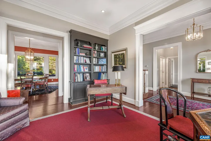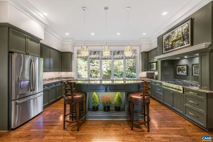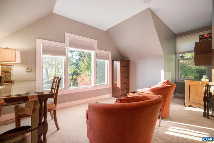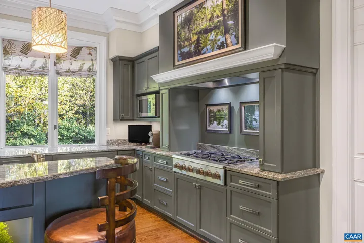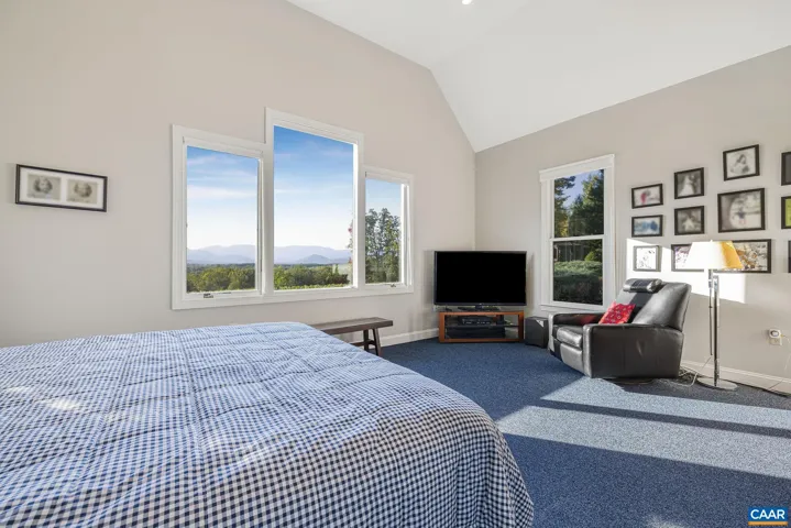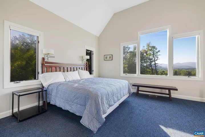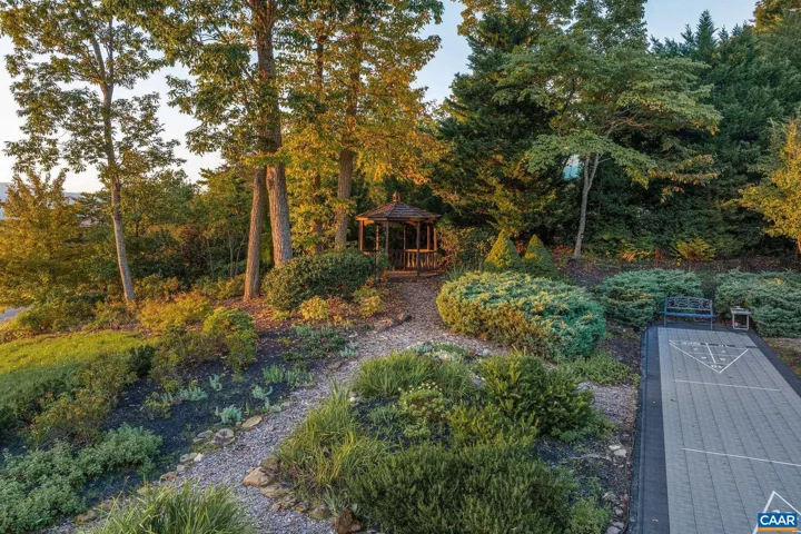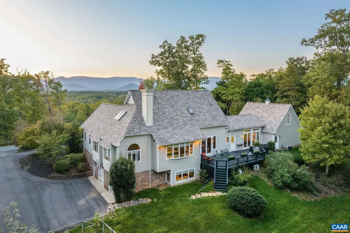 Spectacular protected panoramic Blue Ridge Mtn. views can be enjoyed from every room in this renovated & expanded custom home. Professionally landscaped 4.52 acre lot w/ paths leading to a charming gazebo. The large patio makes this property a wondrous relaxing environment around the firepit. 4BR/4.5BA residence beautifully accented w/ stone on the exterior- beaming w/ curb appeal. Interior has over 4,100 sq.ft. of living space over 3 levels. 46′ long combo living room & sunroom w/ huge windows brings in natural light & takes advantage of the dramatic, ever-changing mountain scene. Views of the deep woods in the back which end in walking paths along a stream can also be seen from most areas of the main floor. Additional Special Features: A fully outfitted gourmet kitchen w/ stainless steel appliances, granite countertops & high end cabinetry; a main level primary suite w/ his & hers walk in closets & baths; high ceilings w/ 9 piece crown molding & tall doorways; a large office area w/ extensive cabinetry & ensuite bath; hardwood & slate flooring; built-ins galore; private rear deck; a fenced vegetable garden & even a shuffleboard court! Truly impressive & offers infinite qualities of fine living! 20 mins to City of Charlottesville,Granite Counter,Painted Cabinets,Wood Cabinets