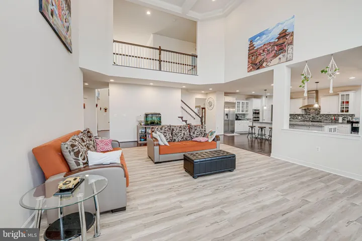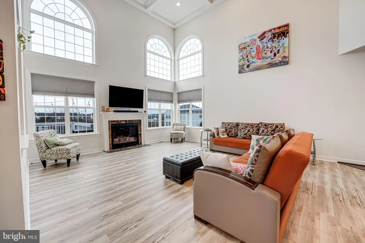 Step inside, and prepare to be captivated by the two-story extended great room—a masterpiece of design that truly steals the show. This grand space is the heart of the home, boasting soaring ceilings, a stunning coffered ceiling treatment, and oversized windows that flood the room with natural light. Whether you’re hosting elegant gatherings, enjoying cozy evenings by the hearth style fireplace , or simply taking in the breathtaking views of the backyard, this space is designed to impress. The recent contrast flooring upgrade enhances the room’s contemporary elegance, creating a perfect blend of warmth and sophistication.