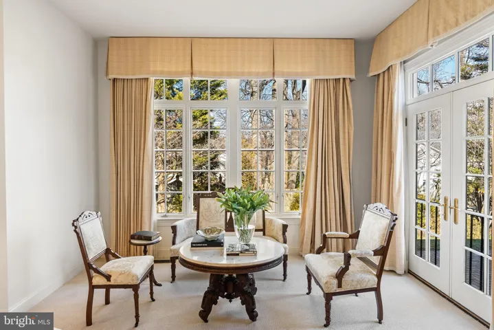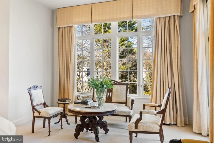 The first floor, with its ten-foot ceilings, features a luxurious primary suite with a sitting area, a spacious bathroom, two large walk-in closets, and French doors that open to the private patio. This level also boasts a beautifully appointed library, a formal living room with a fireplace and an elegant dining room. The expansive family room, with it’s 15-foot ceilings, additional fireplace and French doors that open to the private patio-perfect for outdoor entertaining or quiet relaxation.