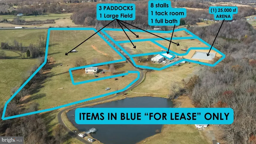 PORTIONS OF FARM FOR LEASE. See photos. Items for lease together including: (1) 25,000 sf Horse Arena, Barn including 8 modern stalls, 1 tack room in back of barn, 1 full modern bathroom, 3 large field paddocks. Bring your horses and enjoy renting this farm and all it’s horse related space.