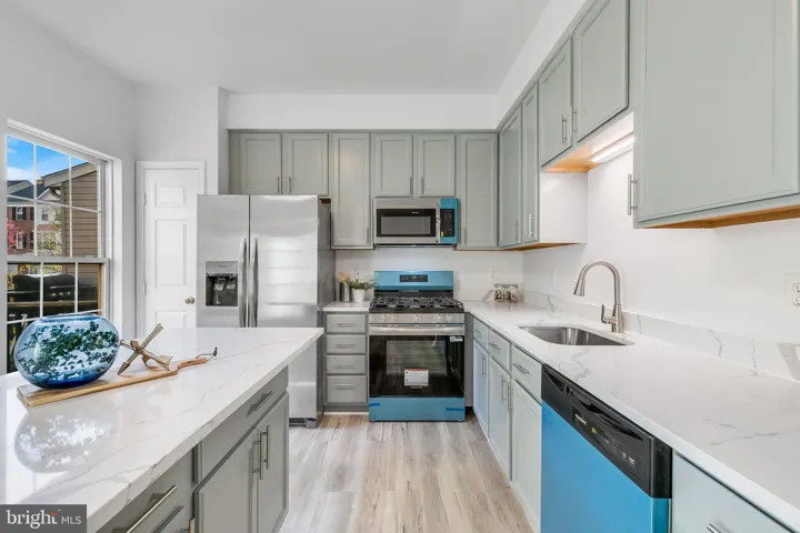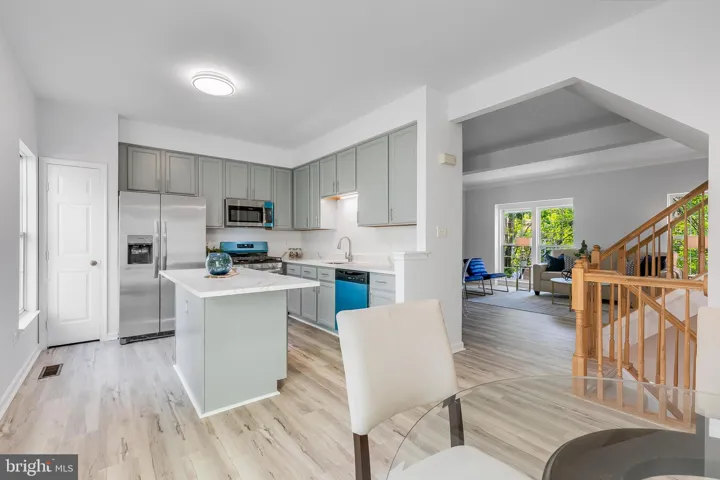 The stunning, brand-new kitchen is a chef’s dream—featuring quartz countertops, all-new stainless steel appliances (still protected by factory film, just waiting for the new owner to peel off!), elegant cabinetry, recessed lighting, and a central island with bar seating. A bright eat-in area completes the space, perfect for casual dining or entertaining.
