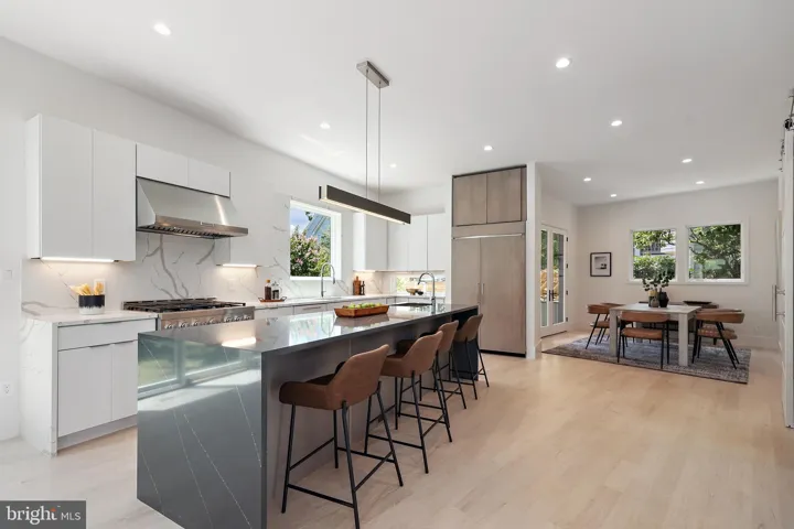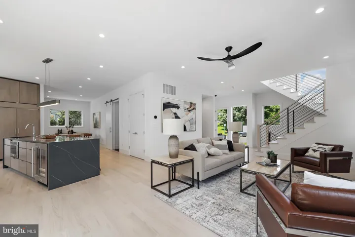 OPEN HOUSE SAT OCT 11TH 1PM to 3PM – Welcome to this stunning 4,950 SqFt modern masterpiece, spanning four levels with 6 bedrooms and 6 bathrooms. Step inside to a beautifully designed main level featuring a covered front porch with a wood-lined ceiling and a striking mix of materials on the exterior that perfectly complements the home’s contemporary style. The expansive open floor plan boasts 10-ft ceilings and a dramatic 4-story staircase with oversized windows that flood the space with natural light. The family room is highlighted by a steel-wrapped fireplace, floating oak shelves, and accent lighting. It seamlessly flows into the chef’s kitchen, equipped with top-of-the-line appliances, a large island with a second prep sink, and floor-to-ceiling windows that offer plenty of sunlight. The kitchen also features a double-door pantry and a spacious breakfast area that opens to a private covered rear deck with a wood-lined ceiling – ideal for outdoor living and leading to a tranquil backyard.