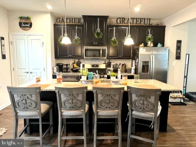 Welcome home to this stunning 3 bedroom, 2.5 bathroom, 2-car garage townhouse that backs to the woods for lots of privacy. The main level features a bright and open floor plan with beautiful, luxury vinyl plank flooring throughout. The gourmet kitchen includes an oversized island with granite countertops, stainless steel appliances, ample cabinet space, and access to a large deck that’s perfect for entertaining. Upper level boast of 3 nice sized bedrooms, including a huge primary bedroom with a walk-in closet and private bathroom with double vanities and a walk-in shower. The lower level has a finished rec room with sliding glass doors that lead to a huge brick patio and fenced-in backyard. Laundry room is conveniently located on the upper level. Use of all HOA amenities are included in the rent, including the community center, outdoor pool, exercise/fitness room, and playgrounds. Conveniently located to I-95, newly opened HOV Express Lanes, commuter lot, VRE, Quantico and downtown Fredericksburg. 15 minute drive to Mary Washington Hospital and University of Mary Washington. Easy access to the Rappahannock River. Absolute must see!!!