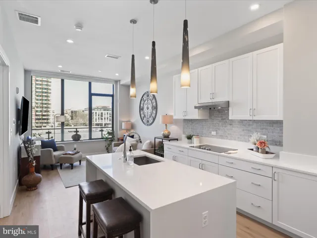 Experience modern luxurious living at its finest in this beautiful condo at 801 N Fairfax Street, Unit 414, built in 2022. This top floor unit boasts an open floor plan with tall 10′ ceilings, expansive balcony and beautiful LVP and tile flooring, enhancing the abundance of natural light throughout. Enjoy two bedrooms and two bathrooms, including a private primary suite. Gourmet kitchen with quartz counters, stainless steel Bosch appliances, large island, lots of cabinetry space and timeless details throughout. Convenience meets style with abundant closet space and an in-unit washer and dryer. Property comes with an additional private storage unit on the same floor across the hall and one premium garage parking space. Enjoy stylish and high-tech condo amenities that include secure building access, an inviting lobby, luxurious community room and grand roof top deck with views of the river. Incredibly located in the heart of Old Town North, next to Mt Vernon Trail with numerous dining, shopping and commuting options.
