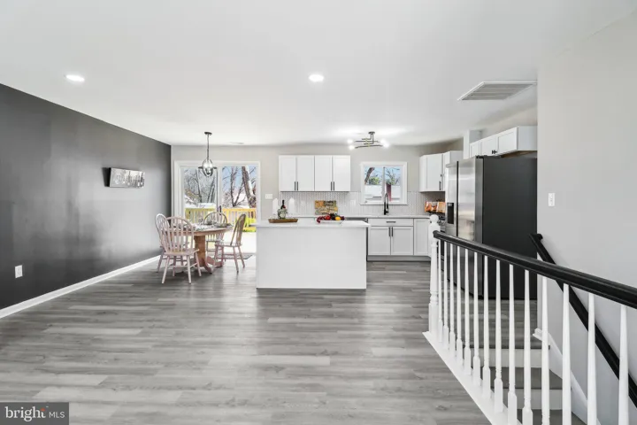 Beautiful single-family home remodeled with care and love. 2 levels, 3 bedrooms, 1 flex room, 2 Full baths. All new flooring, light fixtures, kitchen and bathrooms. The main level offers an open floor plan surrounded by natural light, living and dining areas leads to a new large deck. Elegant kitchen with white line style and gleaming quartz countertops, kitchen island, SS appliances, all new. 3 bedrooms and 1 bathroom. The lower level displays a recreation room, a large flex room with many possible uses such as a 4th bedroom, guest room, office, or gym. 1 full bathroom. Kitchenette. Laundry with new washer & dryer, making this level an ideal independent living space.