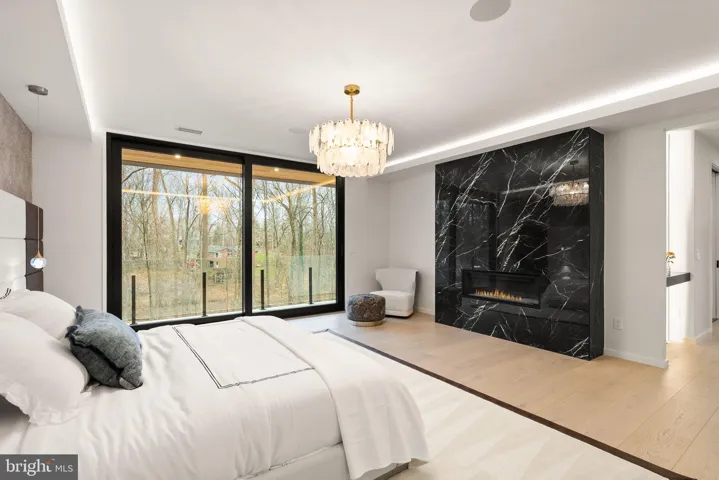 The home’s elevated design and amenities set it apart as a true architectural marvel. European Modern Window Systems by Reynares flood the space with natural light, while the show-stopping 10-foot pivot door creates an unforgettable first impression. Sleek full stucco siding and a flat roof enhance the modern aesthetic, accentuated by dramatic LED strip lighting on the exterior. Inside, Wide Plank Engineered flooring flows throughout, complemented by custom built-ins for functionality and style, and European cabinetry that adds minimalist sophistication. Multiple modern gas fireplaces provide warmth and elegance to key living spaces.