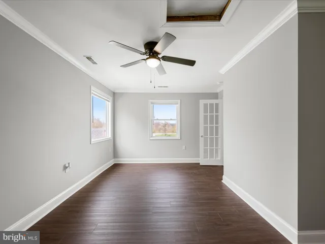 The primary suite boasts an oversized walk-in closet and private exterior door to the covered deck—perfect for morning coffee or evening relaxation. Three additional bedrooms and two full baths provide space for family or guests, with one bedroom offering glass doors that make it an excellent home office option.