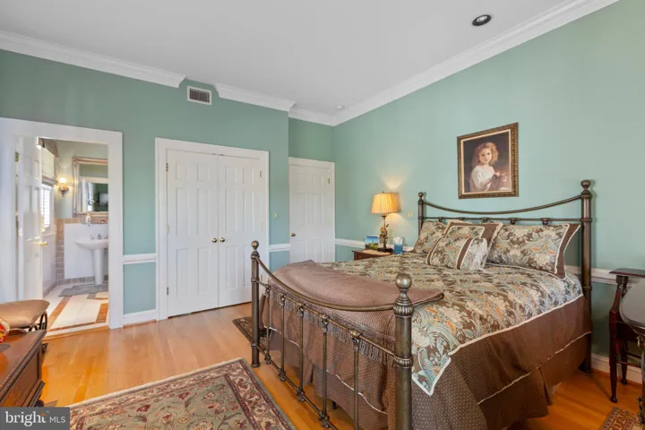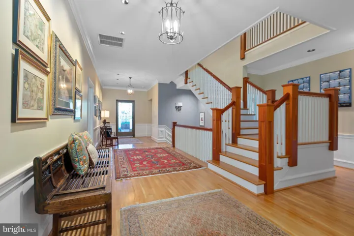 Inside, grand hallways, soaring ceilings, rich hardwood floors and elegant dentil crown moldings create an immediate feeling of the quality you’ll enjoy throughout. The chef’s kitchen features a new Forno eight-burner range with double oven (2024), a full refrigerator (2025), and a Subzero two-drawer freezer. The adjacent hearth room, with a cozy fireplace and floor-to-ceiling windows, offers stunning views of downtown and the University of Mary Washington.