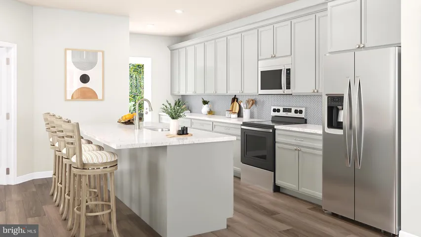 feature quartz countertops and upgraded tiles. A smart tech wiring package enhances connectivity, and generous windows bring in natural light, complemented by contemporary oak stair railings. The main level includes a convenient home office with glass doors, while the second floor offers a loft space for casual lounging or a second home office, along with a formal dining room. The gourmet kitchen showcases a modern farmhouse design with timeless white shaker-style cabinets, a stainless steel gourmet appliance package, elegant quartz countertops, and a large island with a breakfast bar. The seamless flow from the kitchen to the living and dining areas makes it ideal for gatherings. Luxury vinyl plank flooring enhances the main level for both style and easy maintenance. The lower level features an oversized fourth bedroom with a full bath, while the third floor houses three large bedrooms. The elegant exterior boasts a partial brick front and side with bay windows and Hardie Plank siding for a sophisticated curb appeal and a Trex deck for outdoor relaxation.