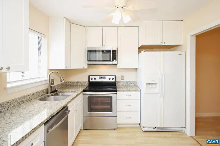 Nestled within the Stonehenge community, this 3 bedroom, 2.5 bath townhome offers quick access to downtown, major roadways, and outdoor recreation. Enjoy nearby Pen Park, Meadow Creek Golf Course, and the Rivanna River Trail. Shopping, dining, entertainment, and the University of Virginia are just a short drive away. Stonehenge residents enjoy a pool, clubhouse, tennis and basketball courts, and a playground. Step into this inviting 1,693 sqft townhome, offering three finished levels designed for comfortable living. The sunlit, walk-out ground level is perfect for a family room or home office. Walk up a flight of steps to the main level, where a living room with a fireplace welcomes you, leading to a dining area and an updated eat-in kitchen with granite countertops and stainless steel appliances. A convenient half bath completes this level. Upstairs, the primary bedroom features an attached full bath, and two additional bedrooms share a hall bath. The laundry area, complete with a washer and dryer, adds to the home’s convenience. Relax on the rear patio under a mature magnolia tree. Two designated parking spaces are located directly out front. *The property is tenant-occupied with a 30 day notice to vacate.*,Granite Counter,White Cabinets,Wood Cabinets,Fireplace in Living Room