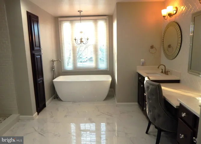 Upstairs, Enter the Master Bedroom featuring hardwood floors and a walk-in closet. Then retreat to your luxurious Master Bath, featuring a double vanity, large soaking tub and separate walk-in shower. The second and third bedrooms have brand-new carpeting, adding to the home’s fresh and modern feel. They are adjoined by an updated Jack and Jill bathroom.