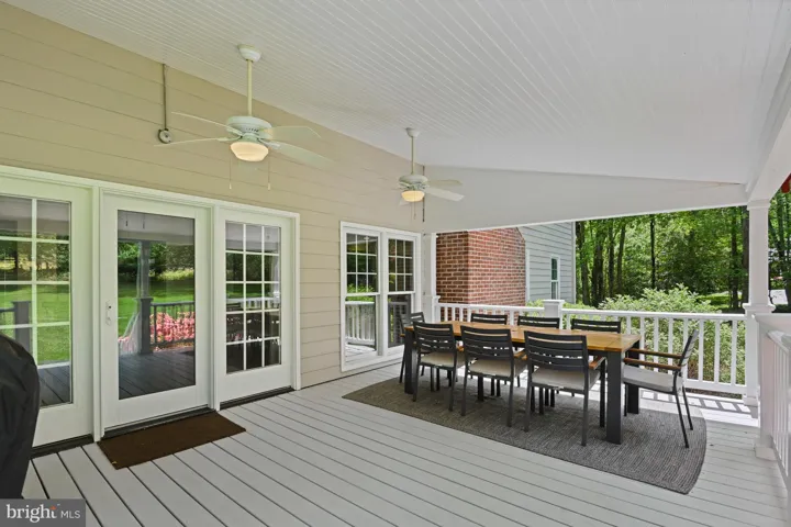 Step into the light-filled two-story foyer and feel instantly at home. The formal Living Room features a cozy wood-burning fireplace and opens to a dedicated Office that is perfect for remote work or a quiet retreat. The Family Room, also centered around a wood-burning fireplace, includes custom built-ins and an inviting nook ideal for a wine bar, coffee station, or extra storage. Flowing seamlessly into the updated Kitchen (2021), this space is the heart of the home with its large center island, stainless steel appliances, crisp countertops, and generous breakfast area with access to the covered deck. A bonus Prep Kitchen offers additional counter space, cabinetry, and a beverage fridge—ideal for catering or entertaining. The main level is completed by a formal Dining Room with extensive built-ins, a Powder Room, and convenient access to the attached 2 car garage.