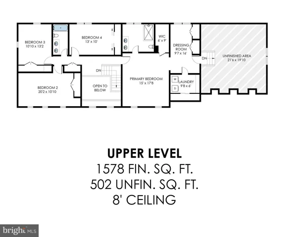 Upstairs, you’ll find four spacious bedrooms including the Primary Suite, which features a walk-in closet, dressing area, and access to an unfinished bonus space (attic) ready to become an expansive custom closet, private office, reconfigured primary suite or use as is for storage…too many options to name! The Primary Suite also includes a dedicated laundry center for ultimate convenience. An updated full hall bath with skylights completes the upper level.
