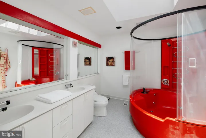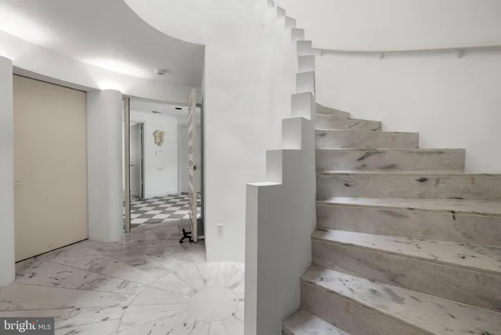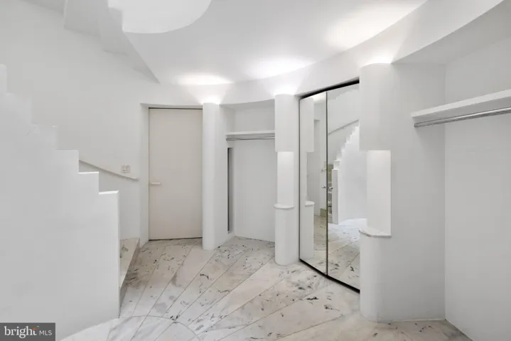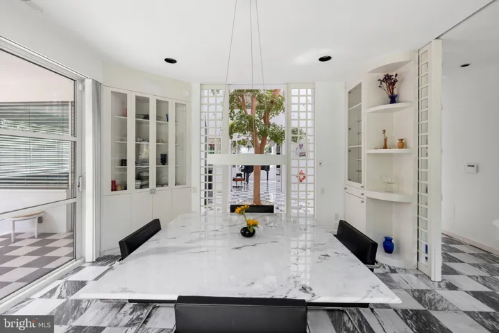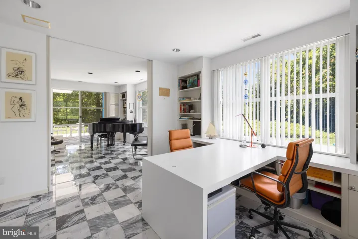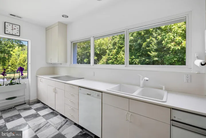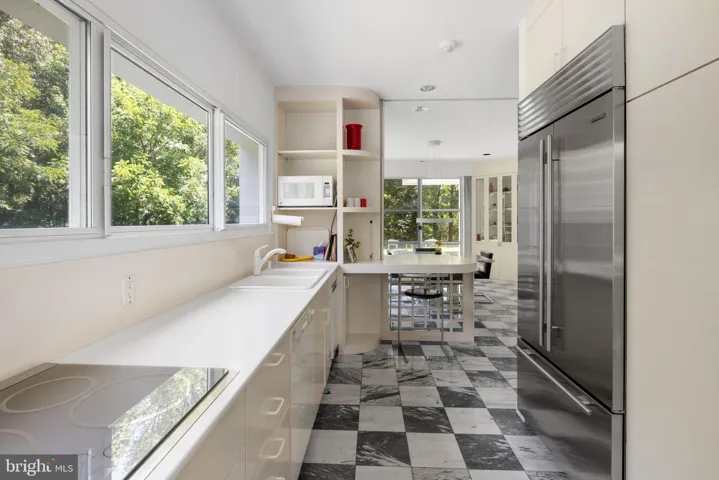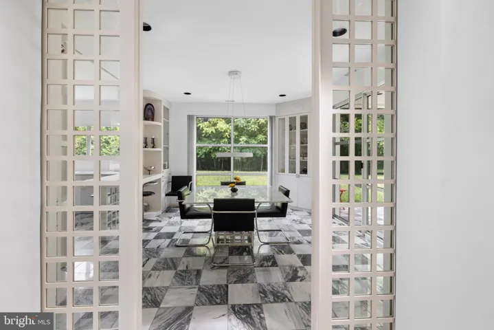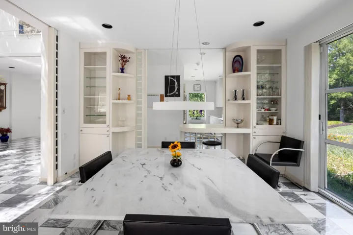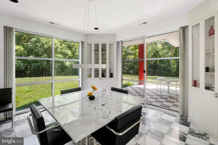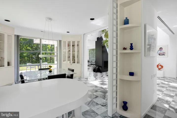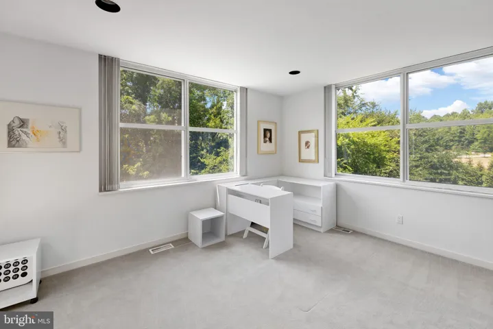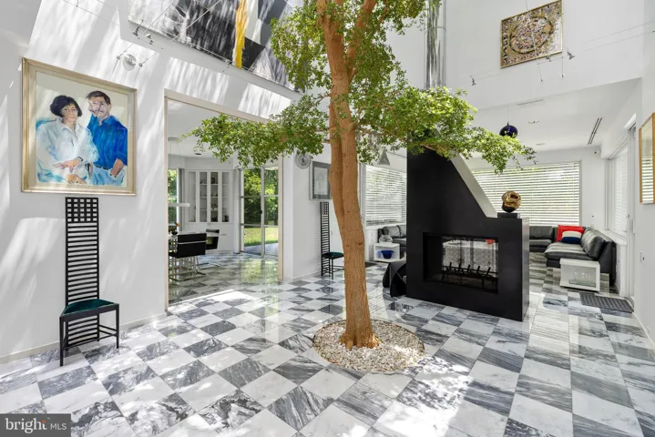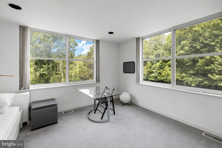 Price Reduced–A rare opportunity to own a custom, contemporary-international style home in the coveted Pembroke neighborhood along the River Road corridor awaits. This home features large picture windows in all but two spaces in the home, bathing the interiors in light throughout the day and the night. Built w/ cutting-edge sustainable techniques at the time, the home remains energy-efficient and features a rooftop greenspace above the garage. Upon entering the marbled foyer, discover the first of 5 BRs, complete w/ an ensuite bath, built-in Murphy bed, and sliding glass doors that open to the outdoors, offering flexible use. To the left, the striking spiral staircase, crafted as a single piece of steel and poured concrete, is bathed in natural light from above. On the main level, marbled flooring in a gray & white checkerboard gives a formal finish to the open space. A 2-story sky-lit atrium anchors the 4 living spaces that flow freely into one another. Just beyond the double-sided fireplace, the LR is tucked in a square bay flanked by large windows. The kitchen and DR are stunningly simple and efficiently designed to serve their purposes. A home office w/ custom cabinetry connects seamlessly to a sitting room, also outfitted w/ custom built-in shelving. Glass and wood grid-patterned pocket doors can be utilized to separate the spaces. Following the natural light, the terrace off the dining area faces east, while the terrace off the LR faces west and is perfect for sunset entertaining. Follow the spiral staircase up to find 4 BRs, each w/ an ensuite bath. The primary suite features a wall of mirrored closet doors to reflect the westward facing view. A guest room features a built-in Murphy bed for flexibility to be used as an upstairs den if desired. Set on nearly 4 acres, this property offers unparalleled privacy, while still being part of a vibrant community with views and access to the James River. Don’t miss this opportunity to own a truly unique and enduring property that brings intention and functionality together.