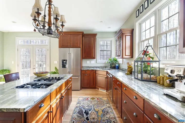 A MUST SEE, impeccably maintained home, 3,887 finished Square Feet in NORTHERN ALBEMARLE county AND LAND!! Exceptional home with 2.21 acres in the serene, wooded, neighborhood of Foxwood Forest. Minutes from Target, HT, NGIC. Access downtown C-ville via Rt 29 or Rt. 20. Enjoy the bluestone front porch overlooking the nearly level, landscaped front yard or the composite deck in the back. Family room and eat in kitchen at the back with two sided fireplace. Granite countertops in kitchen that are a piece of art. On the second floor find 4 bedrooms, 2 with en-suites and a Jack and Jill bath for the remaining 2. Large closets in all rooms. Finished terrace level with 10′ ceilings, wet bar and porcelain tile floors that walk out to a magnificent, covered bluestone patio that leads you via lit path to the family fire pit. Lutron Caseta smart light system, wired speakers, Fiber optic internet, cat 5e wired home and invisible fence. Many updates (see info in docs) and a great walking/biking neighborhood or easy access in minutes to Preddy Creek Trails with 571 acre recreational area for hiking, mountain biking and equestrian riding. Priced close to county assessment. Back on the market to no fault of owners,Cherry Cabinets,Granite Counter,Wood Cabinets,Fireplace in Family Room