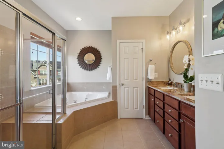 Upstairs, the primary suite is your personal retreat. It’s generously sized and features a trey ceiling and a large walk-in closet with custom closet organization to keep everything neat and tidy. The spa-like en suite bathroom has been thoughtfully updated with granite countertops, dual sinks, updated mirrors and light fixtures, and a luxurious corner soaking tub — the perfect place to unwind after a long day.