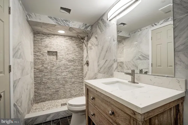 Complete renovation “Everything was gutted” to framing then reconfigured. 3 level all brick townhouse with walkout basement and rear patio/garden (under construction) Rear outdoor fireplace Lower level interior fireplace 4 bedroom 3.5 oversized bathrooms designed with large Arabescato Carrara white marble and montauk slate floors designer showers and bathtubs with sliding glass doors Finished basement Finished laundry room Central vacuum system on all floors Hardwood redwood flooring on main level Luxury Vinyl Tile flooring with foam padding on upper and lower levels Exterior walls insulated with owens corrning solid 1 inch foam insulation All room walls insulated All floor levels insulated New e rated oversized windows and doors All new electric appliances May tag washer and dryer Newly installed HVAC System Newly Landscaped front yard. 2 parking spaces directly in front of the house Deep kitchen with large eat-in island. Convenient location inside the beltway 100 ft to bus stop Walking distance to parks, lots of shopping, groceries, restaurant, and library