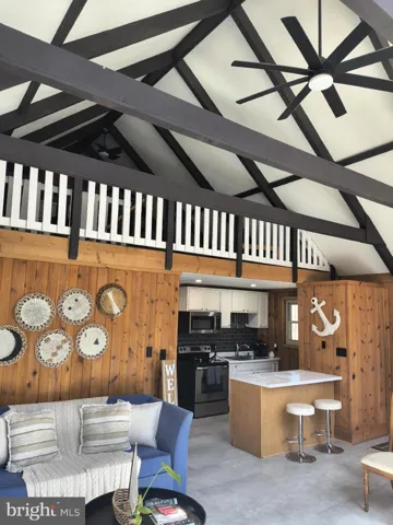 The primary bedroom boasts sliding doors to a screened porch, while the second bedroom/sitting room opens to a spacious back deck. Additional rooms provide flexibility for an office or extra living space, plus a spacious loft that spans half the home—perfect as a third bedroom, guest area, or bonus living space. Storage won’t be an issue with plenty of closets throughout. The open floor plan is highlighted by a stunning floor-to-ceiling stone wall and a newer gas stove, creating a cozy atmosphere.