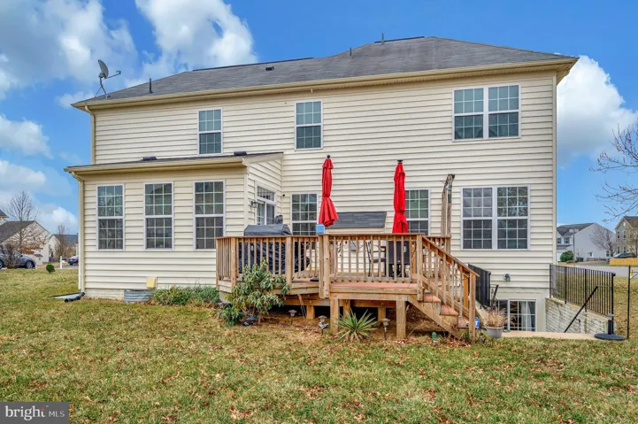 Welcome to this beautiful three-story colonial situated on a spacious corner lot, offering both elegance and comfort. Step inside to discover a gourmet kitchen that any chef would love, featuring a center island, 42-inch cabinets, a pantry, recessed lighting, a double oven, gas cooktop, ceramic tile backsplash, and luxurious Corian countertops. This home boasts four generously sized bedrooms, including two with walk-in closets, while the primary suite is a true retreat, complete with French doors and a private bath featuring a soaking tub, walk-in shower, and dual vanities. The hall bath also includes dual vanities and hardwood flooring for added convenience. Entertain guests in the formal living and dining rooms, or enjoy a quiet moment in the main level office with French doors. The sunroom off the kitchen is perfect for soaking in natural light, while the family room with a cozy gas fireplace provides warmth and comfort for gatherings. Additional highlights include a large unfinished basement ready for your personal touch and a beautiful deck overlooking the large corner lot—perfect for outdoor entertaining or relaxation. Don’t miss the opportunity to make this stunning home yours! Schedule a showing today!