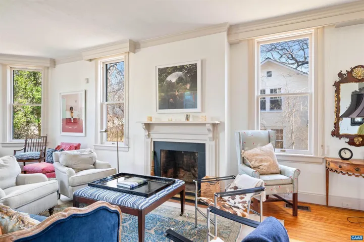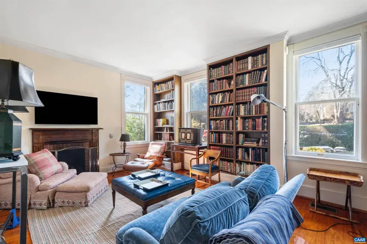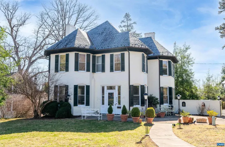 Located on historic Rugby Road, this stately circa 1896 home offers timeless elegance and modern convenience, all within an easy walk to The Corner, UVA Grounds, Downtown, and Barracks Road Shopping Center. Set on a large lot framed by mature trees and landscaping, the home features flowing, light-filled rooms that capture its rich history and charm. Pocket doors, built-in bookshelves, and crown moldings are just a few of the intricate design details that make this home truly special. With 4 bedrooms, 4 baths, and a beautiful library, this residence is a rare find and a must-see.,Formica Counter,Wood Cabinets,Fireplace in Bedroom,Fireplace in Dining Room,Fireplace in Living Room,Fireplace in Study/Library