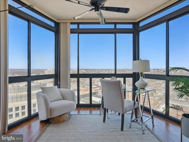 BALLSTON PENTHOUSE with million dollar views and largest condo on the market under $1 Million! This spacious 2-bedroom, 2.5-bath 1775 sqft home features a unique, open layout with breathtaking East and West exposures, filling the space with natural light through floor-to-ceiling windows. Enter through the foyer, where you’ll find a convenient coat closet before heading upstairs to your stunning single-floor living space. The generous family room opens to a light filled den or office area with floor-to-ceiling windows, offering fabulous views and abundant natural light. The family room seamlessly connects to the dining area, creating a perfect space for entertaining. In addition, there is a separate living room or lounge, providing even more space to relax or host guests. The sleek Neff kitchen boasts granite countertops and custom built-ins, ideal for culinary enthusiasts.