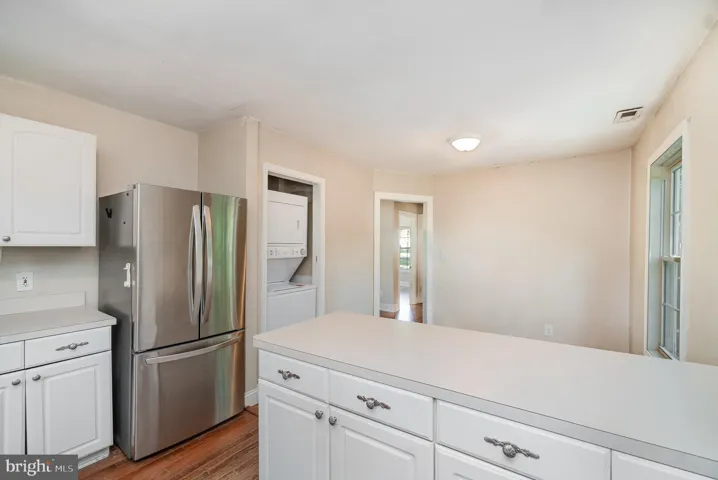 Step inside to a bright and inviting family room featuring wood flooring and abundant natural light. The adjacent eat-in kitchen provides a warm, functional space for daily living and entertainment. The main level also includes a full bathroom and two well-sized bedrooms, each filled with sunlight, wood floors, and a sense of privacy.